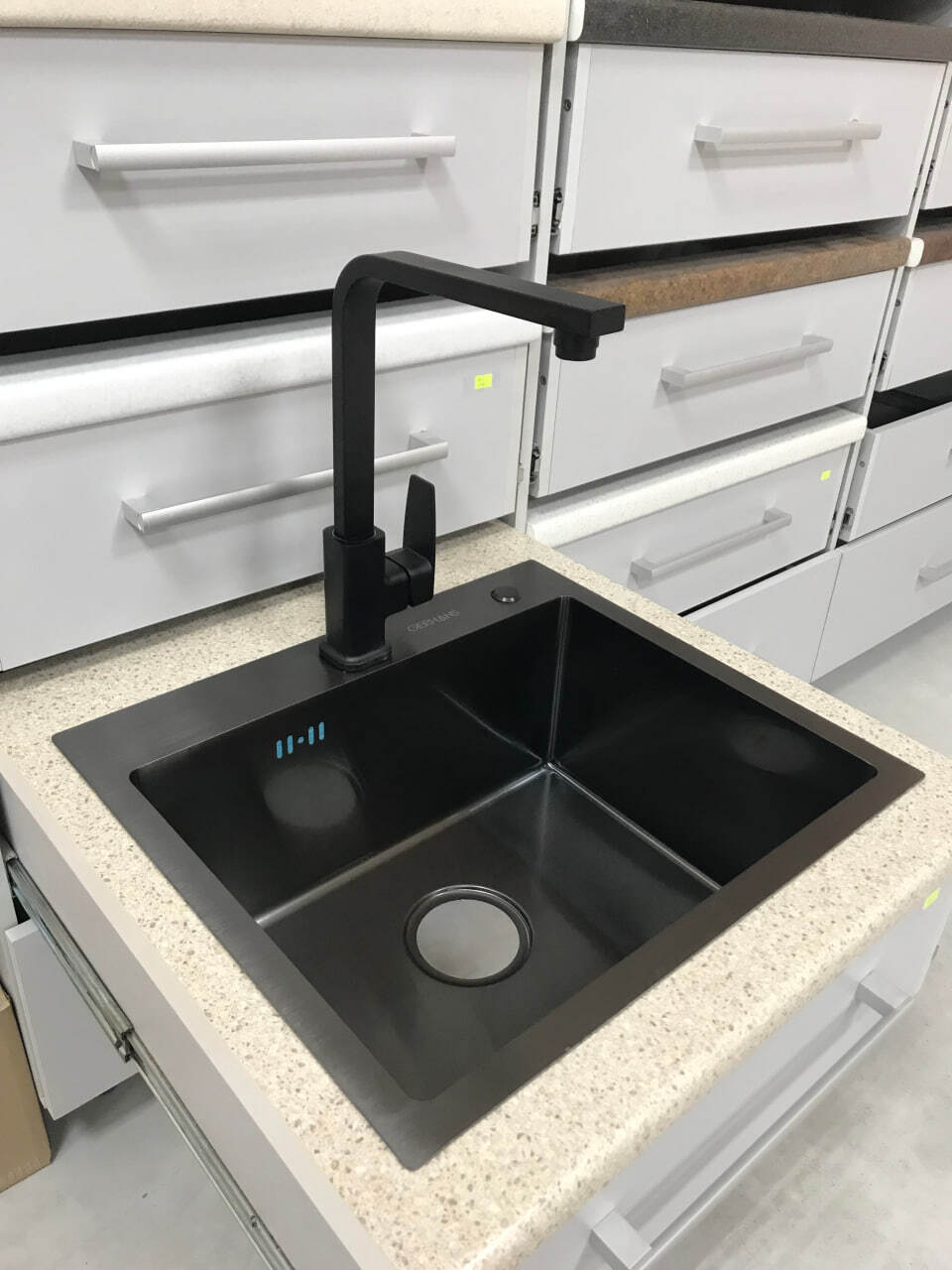 В выставочном зале представлен широкий ассортимент кухонных моек из камня и нержавеющей стали, а также смесителей к ним. Все они высшего качества российского производства, что делает возможным гарантийное и послегарантийное обслуживание.